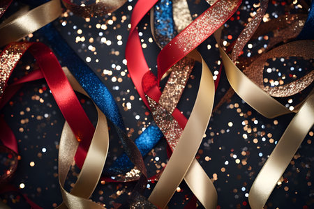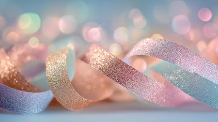 Colorful ribbons on glitter background - Ai Generated