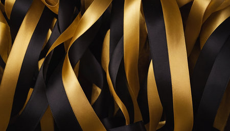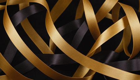 A matte black background with gold ribbon accents. The flowing gold ribbons add a touch of graceful elegance to the luxurious black surface.