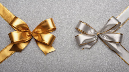 Beautiful gold and silver ribbons create a stunning visual on a shimmering silver background. Perfect for any gift-giving occasion or festive celebration.