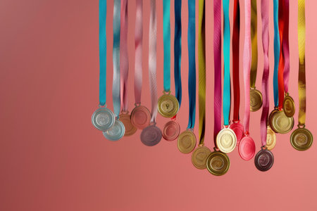 Medals and Ribbon Showcasing a collection of medals hanging from colorful ribbons