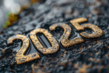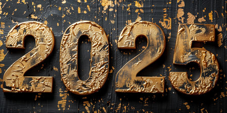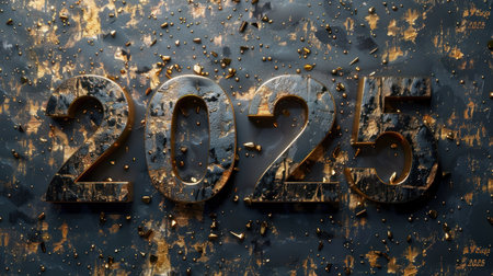 2025 golden numbers carved on dark stone background