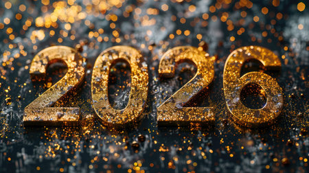 Beautifully crafted golden numbers representing 2026 sparkle against a black background, perfect for New Year's celebrations or festive themes, radiating joy and hope.