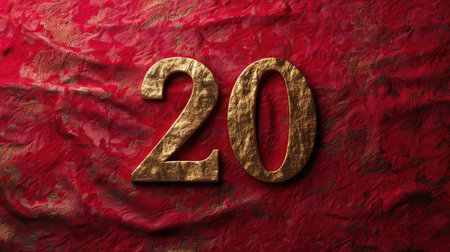 Golden number 20 on red background for celebration