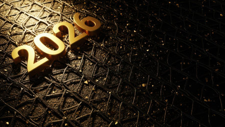 Metallic numbers representing the year 2026 displayed on a smooth dark fabric surface