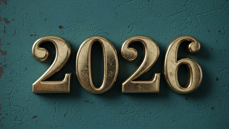 Year 2026 depicted with textured blue metal numbers on a neutral background
