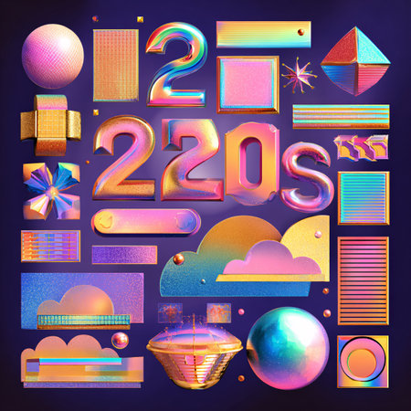 This vibrant abstract composition features a mix of glossy shapes and playful textures, creating a visually striking piece ideal for modern design and artistic projects.