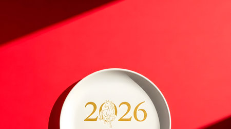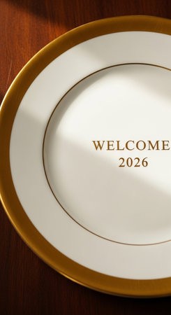 Metallic golden plate displaying the engraved year 2026, signaling the future, new beginnings, planning, and success