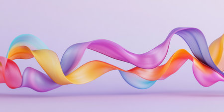 Swirling vibrant ribbons create dynamic movement on a minimalist background