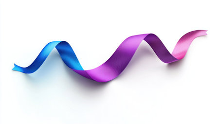 Colorful wavy ribbon on a white background, vector illustration. Colorful ribbon, white background, vector art, 3D render, 20 megapixels, 56K resolution, high detail, purple and blue gradient. --ar 53:30 --v 6.1 Job ID: d35da64e-80e1-4a32-bbdb-b01e397d0ac0