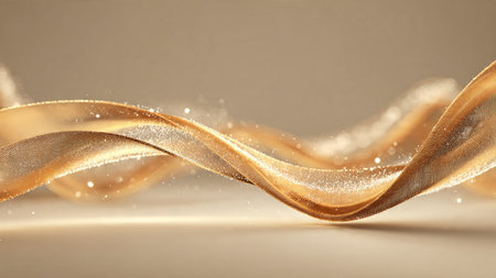 A delicate golden ribbon weaves gracefully across a soft pale backdrop, offering an ideal space for a special message or invitation to stand out.