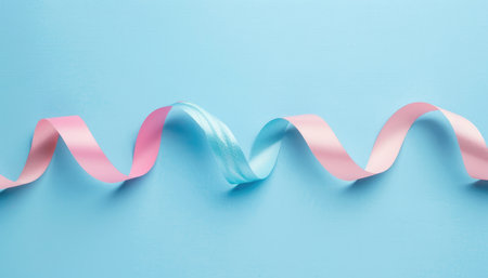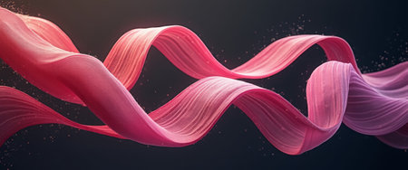 Delicate pink ribbon weaves gently across a pastel backdrop, representing hope and raising awareness for health related causes in a serene setting.