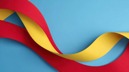 This image presents an abstract composition with cut paper elements. The design features flowing ribbons in red and yellow hues set against a blue backdrop. The style is modern, with smooth gradients and a dynamic, layered arrangement. It may be suitable for creative projects, marketing materials, and various editorial designs.