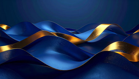 The golden metallic ribbon forms a wave on a dark navy background, creating an elegant layout suitable for various design projects.