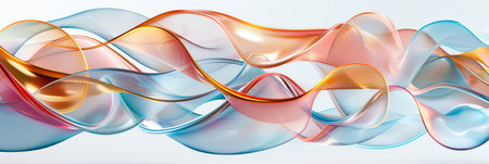 Abstract futuristic 3D rendering of colorful ribbons in motion on a white background with a holographic iridescent effect. Concept for technology, design, and digital innovation. --ar 2:1 --v 6.1 Job ID: 31670d9e-ca77-45c9-a688-52d9f2b3f449