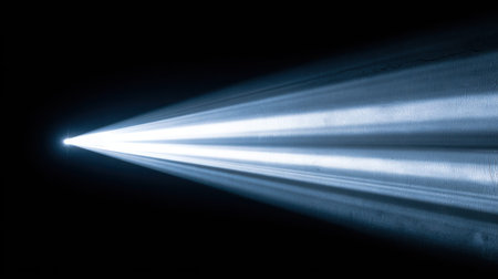 The image captures beams of light emerging from a point source against a dark background, creating a visual contrast. The cool-toned beams fan out, suggesting movement and direction. This composition, with its emphasis on light and shadow, could be suitable for visual design, conceptual projects, or background illustrations.