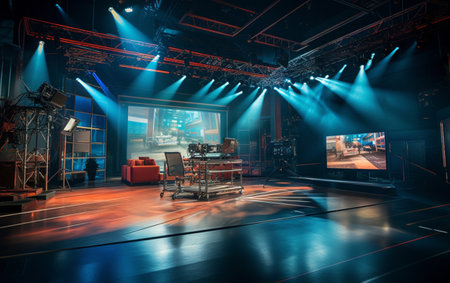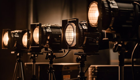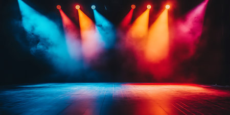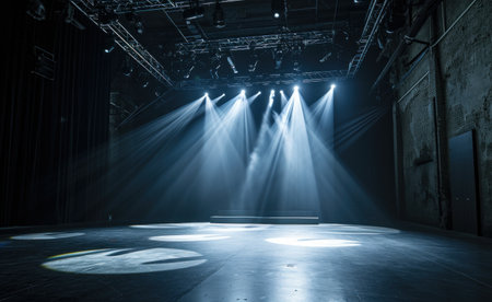 Illuminated stage theater with spotlight and reflector, using modern technology generated by artificial intelligence