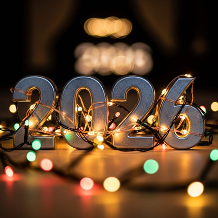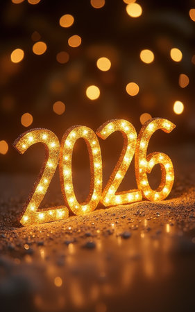 Sparkling numbers stand out on a festive backdrop, welcoming the new year with excitement.