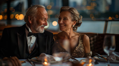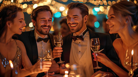 People interacting and grinning in formal attire as they enjoy a lavish celebration