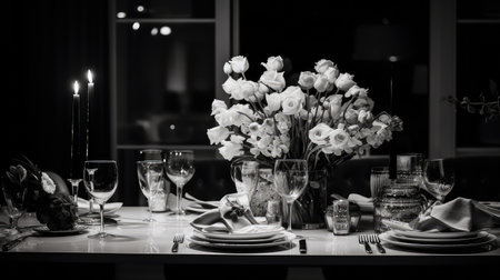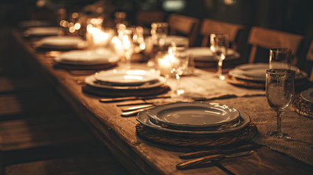Experience the charm of an elegantly set dining table ready for a cozy evening. Soft candlelight enhances the ambiance, inviting warmth and togetherness.