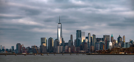 View from the water, from Hudson bay to Lower Manhattan. New York City Financial capital of America. USA.