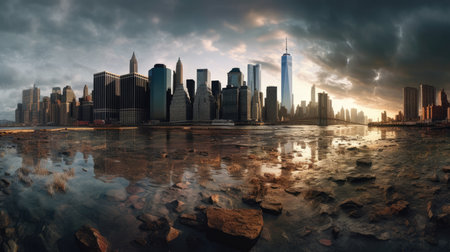 The skyscrapers and building in new york city with the beautiful sky in the morning. Generative AI AIG21.