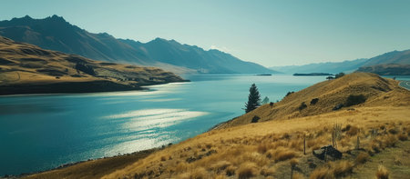 Lake landscape scene in New Zealand