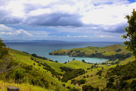 Green Hills and Ocean New Zealand Landscape