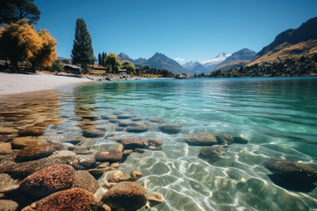 Serena beach in Queenstown Bay, New Zealand., generative AI