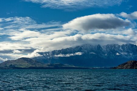 The snow capped alpine mountains called The Remarkables on Lake Wakatipu Otago Region in New Zealand