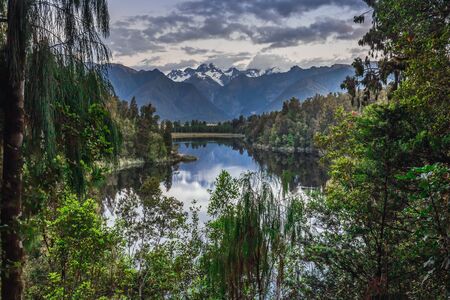 Twin Peaks reflect in the beautiful Lake Matheson, Southern Alps, South Island, New Zealand.
