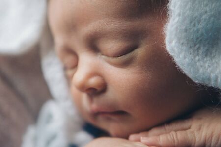 Cute newborn baby sleeping on a soft blanket, close-up