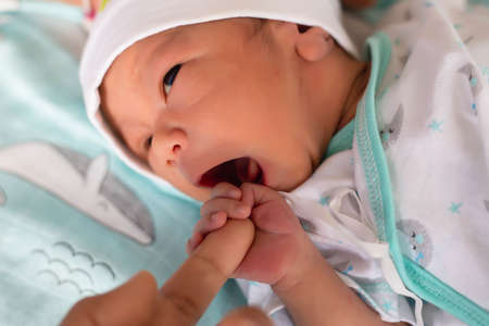 Cute asian baby newborn close up