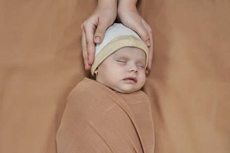 Newborn baby sleeping wrapped in blanket