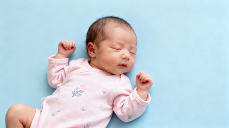 Newborn baby sleeping in pink outfit