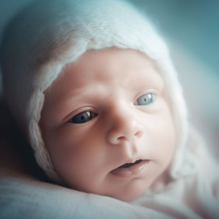 An AI generated illustration of a closeup of a small infant lying in a soft blue blanket