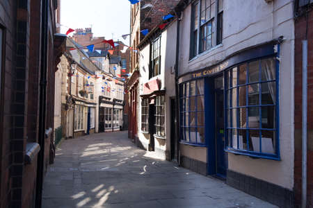 Quaint english street with georgian and victorian shops, Whitby, UK