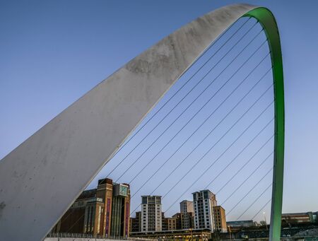 GATESHEAD, TYNE AND WEAR/UK - JANUARY 20 : View of the Millennium Bridge at dusk in Gateshead, Tyne and Wear on January 20, 2018