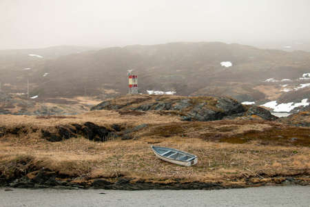 Cape Bona Vista coastline in Newfoundland, Canada. Lighthouse station atop the end of the cape ahead on the horizon.