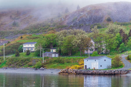Group of new vacation homes built on the shore Bay Newfoundland, Canada. high quality photo