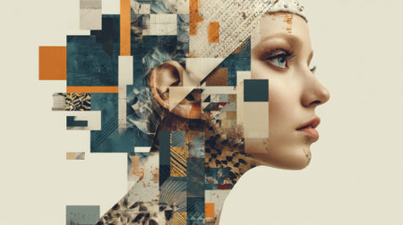Abstract portrait of young caucasian female with geometric overlay.