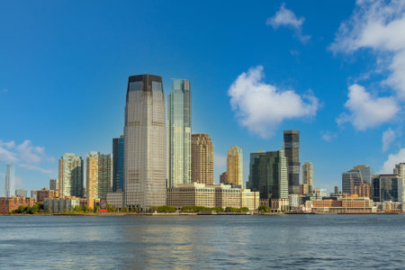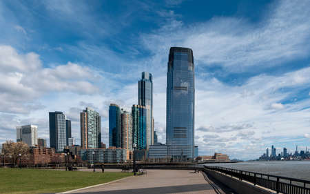 Jersey City skyline at sunny day from New York Skyline Observation Deck. High-quality photo