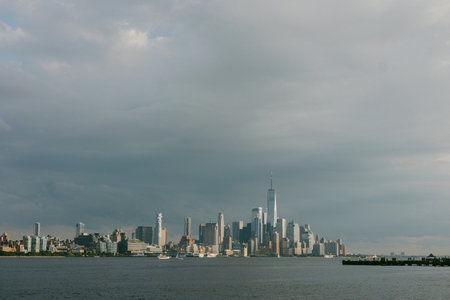 View of Manhattan from hudson river, New York City. USA, NYC NY , Manhattan. Lower Manhattan skyline. New York, United States. New York city skyline in Midtown Manhattan.