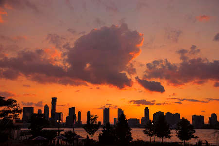 New Jersey skyline at sunset from Manhattan, New York City over the Hudson River.