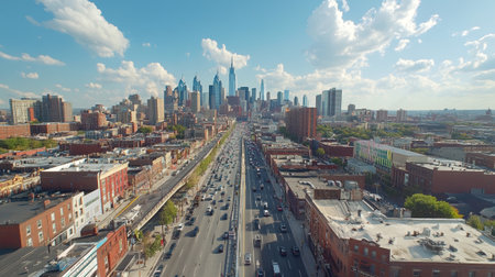 Aerial view of the streets of downtown Philadelphia, Pennsylvania, USA.