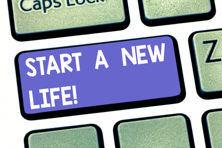 Handwriting text writing Start A New Life. Concept meaning Change your habits be different changing direction Keyboard key Intention to create computer message pressing keypad idea