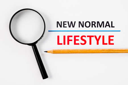Time for a new normal with magnigying glass on paper. Life after pandemic concept.
