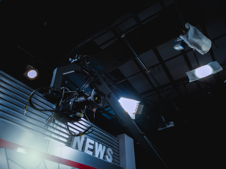 Television camera close-up in the news studio