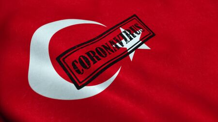 Coronavirus stamp on the flag of Turkey. Coronavirus concept. 3d rendering.