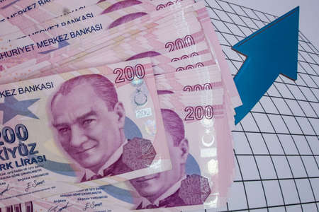 istanbul, turkey-april 29,2021.200 turkish lira banknotes for financial and economic indicators.