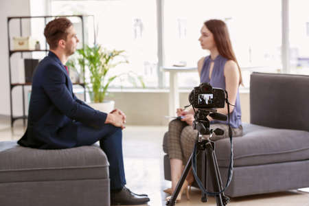 Filming of job interview with applicant in office